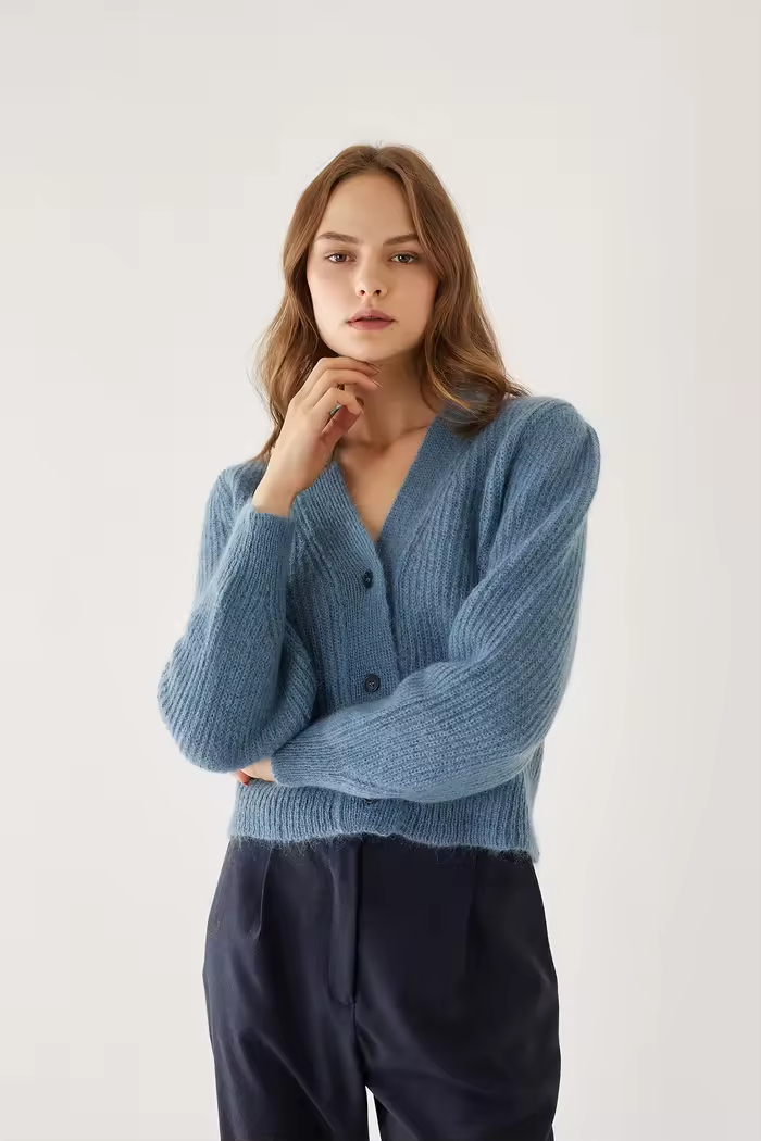 Custom Embroidered LOGO Casual Fashion Knit Top Solid Color Design Blend Knit Cardigan for Women